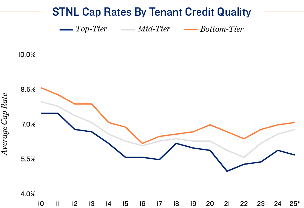 - Cap rates on STNL properties often vary depending on the tenant's credit standing and lease term remaining. These factors have become increasingly important over the past year.
