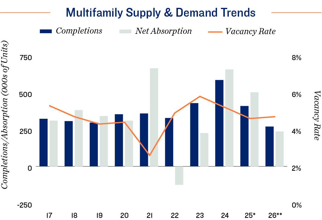 Longer-term outlook positive. Despite short-term headwinds, performance should improve for multifamily properties over a more extended time horizon.